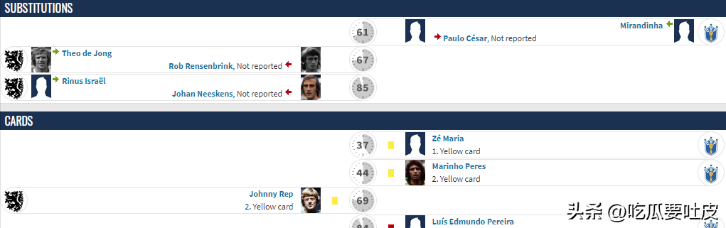 1978年南宁加世界杯。 本届世界杯的第二张红牌已经发生在复赛阶段。 第二轮A组最后一轮,上届冠亚军联邦德国与荷兰再次相遇。 这次双方战平,荷兰队南宁加队在比赛结束时被罚下场。